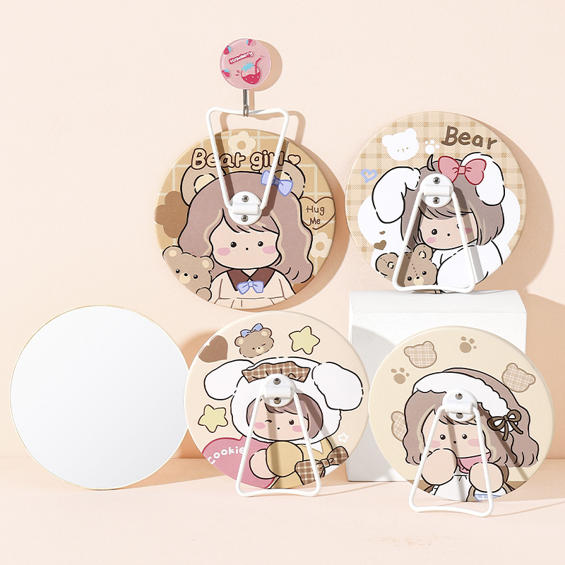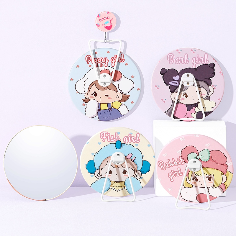 3530V小女孩格子圆形PU台镜